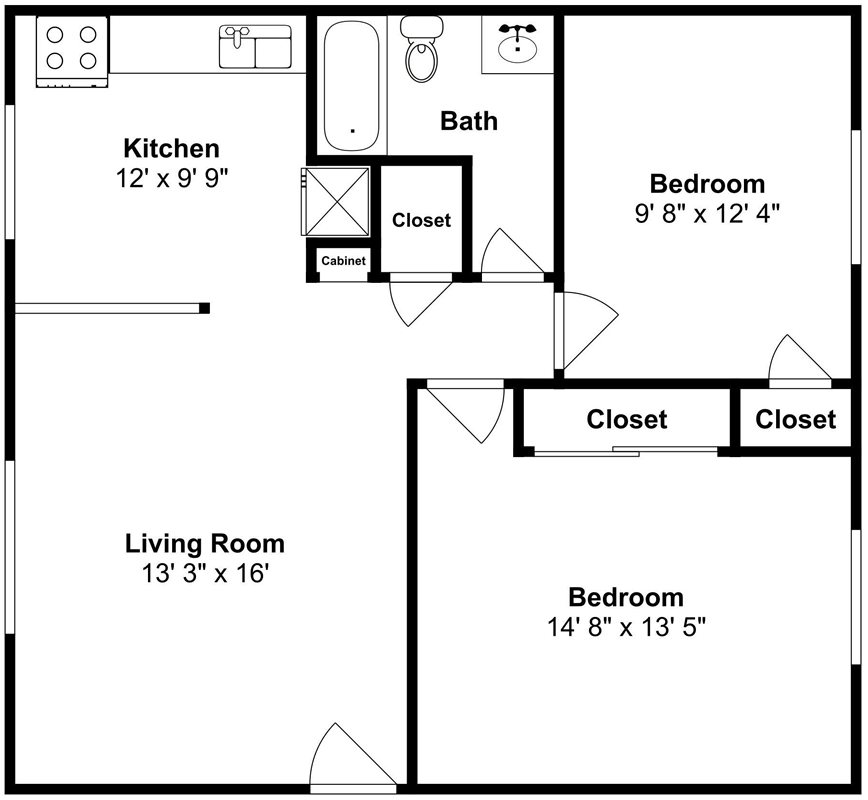 Two Bedroom / One Bath / 823 Sq.Ft.*